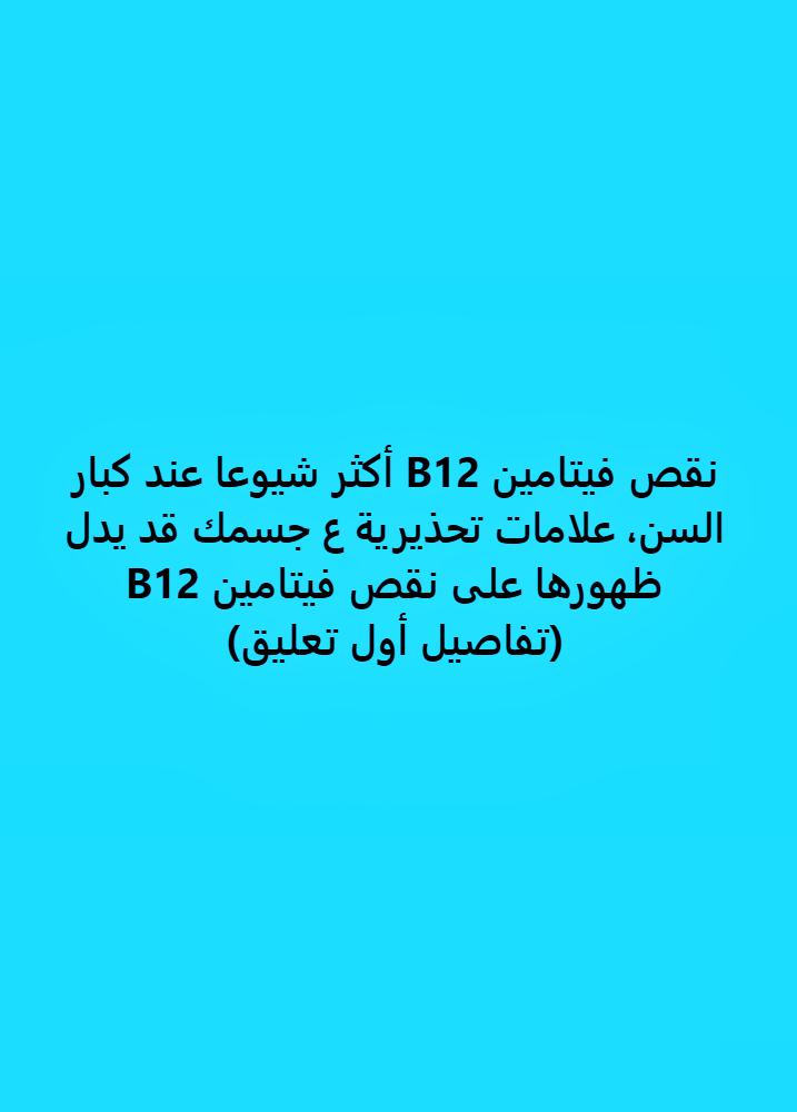 يمر كبار السن بتغيرات فسيولوجية طبيعية تؤثر على امتصاص العناصر الغذائية. قد يكون نقص فيتامين B12 نتيجة لعدة أسباب، منها:
