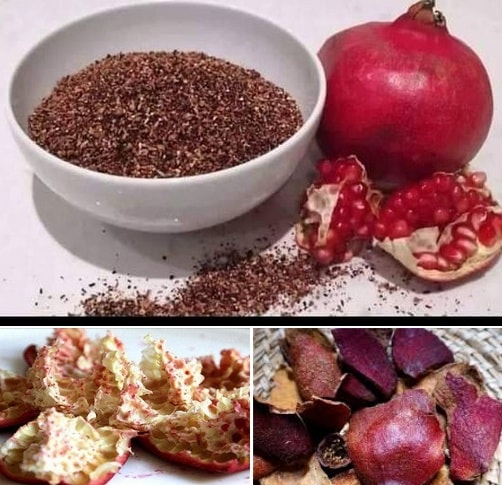 - المسحوق: يتم تجفيف قشر الرمان ثم طحنه ليصبح مسحوقًا، والذي يمكن إضافته إلى العصائر أو الزبادي، أو استخدامه في إعداد الماسكات التجميلية.