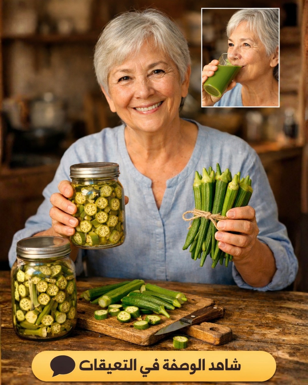 النقع: يتم وضع 4-5 حبات من البامية في كوب من الماء ونقعها لمدة 8 ساعات أو طوال الليل. يُفضل تركها في الثلاجة للحفاظ على برودتها.