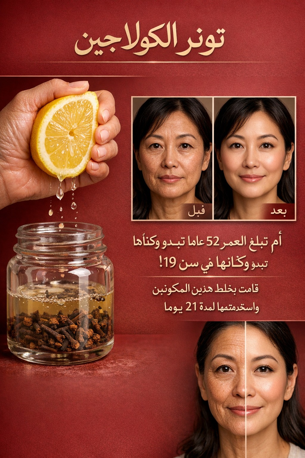 تونك مضاد للشيخوخة بالكولاجين: كيف يمكن لمزيج الليمون والقرنفل أن يعيد الحيوية للبشرة