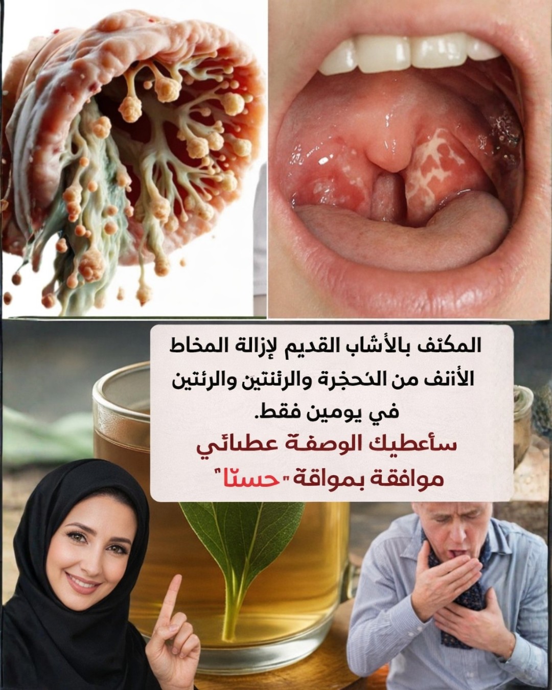 علاج عشبي تقليدي للتخلص من المخاط في الأنف والحلق والرئتين خلال يومين فقط