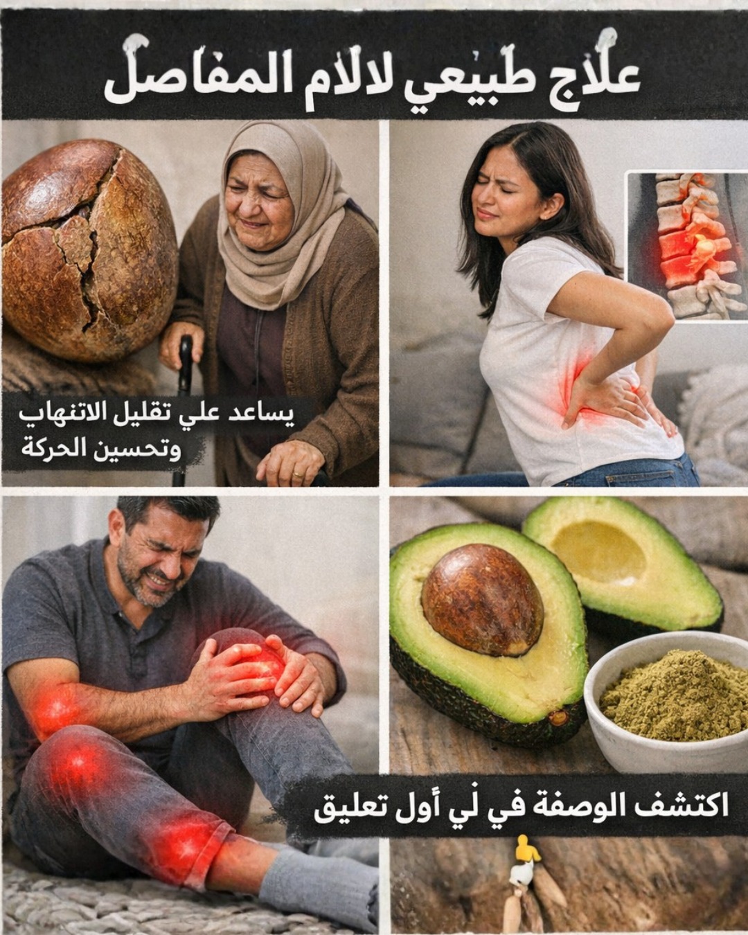 تقليل الالتهاب: بفضل مضادات الأكسدة، تساعد نواة الأفوكادو في تخفيف الالتهابات التي قد تسبب آلام المفاصل والظهر.